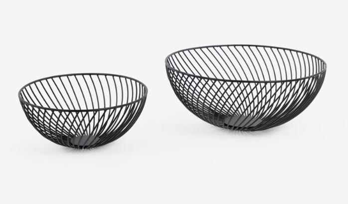 1 set of two black metal wire bowls